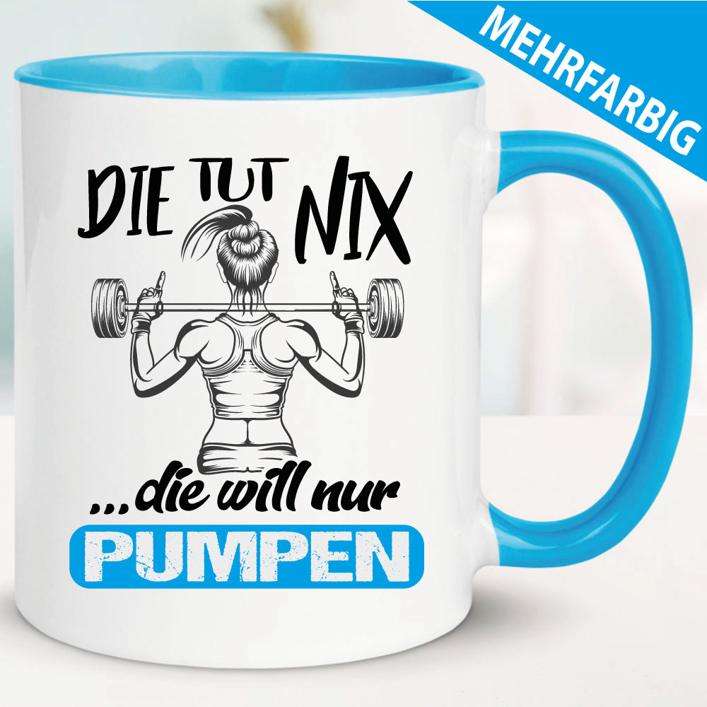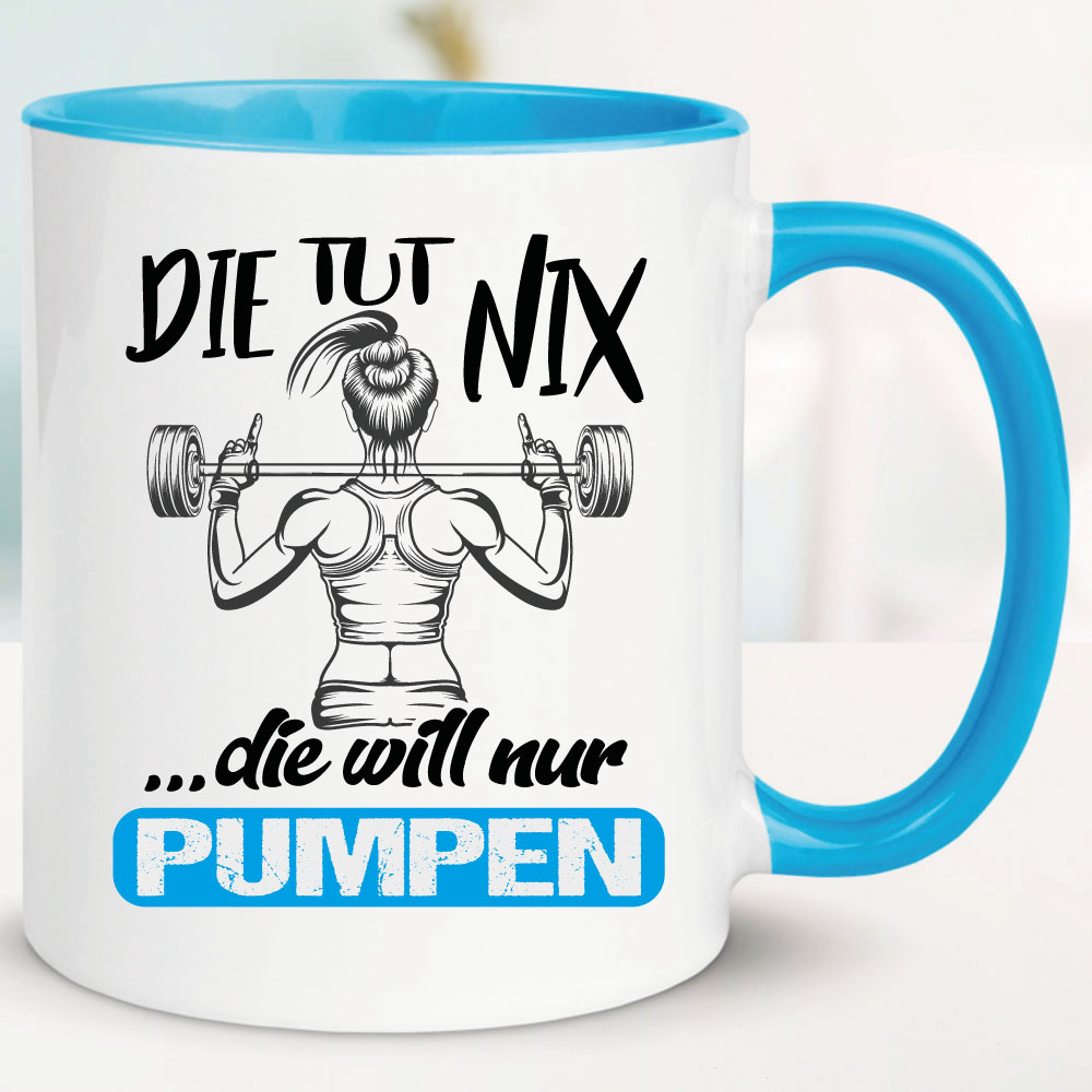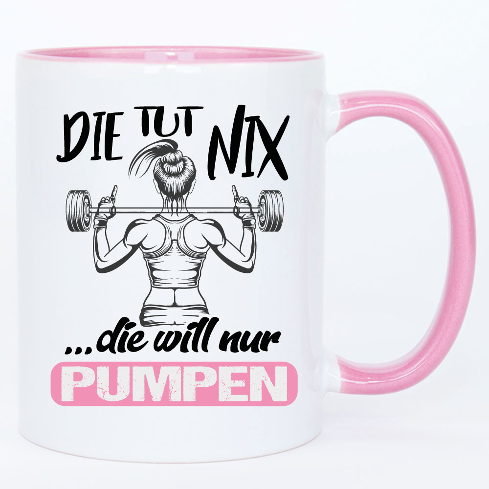 Die tut nix Die will nur pumpen - Tasse Bodybuilding Frau