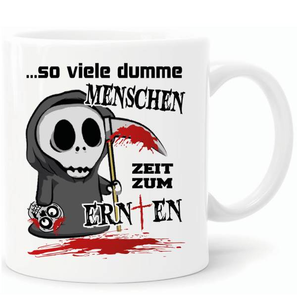 Dumme Menschen - Zeit zum Ernten. Tasse Sensenmann.