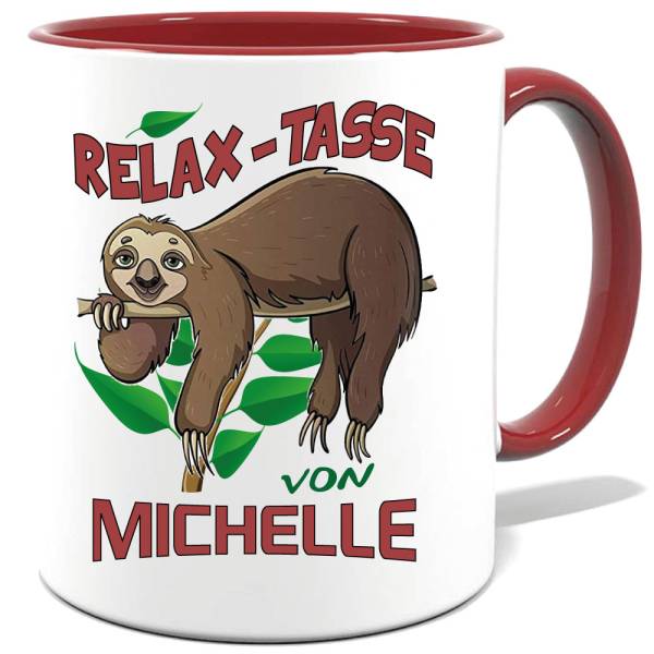 Mobile Preview: Tasse Relax mit Faultier und Wunschname