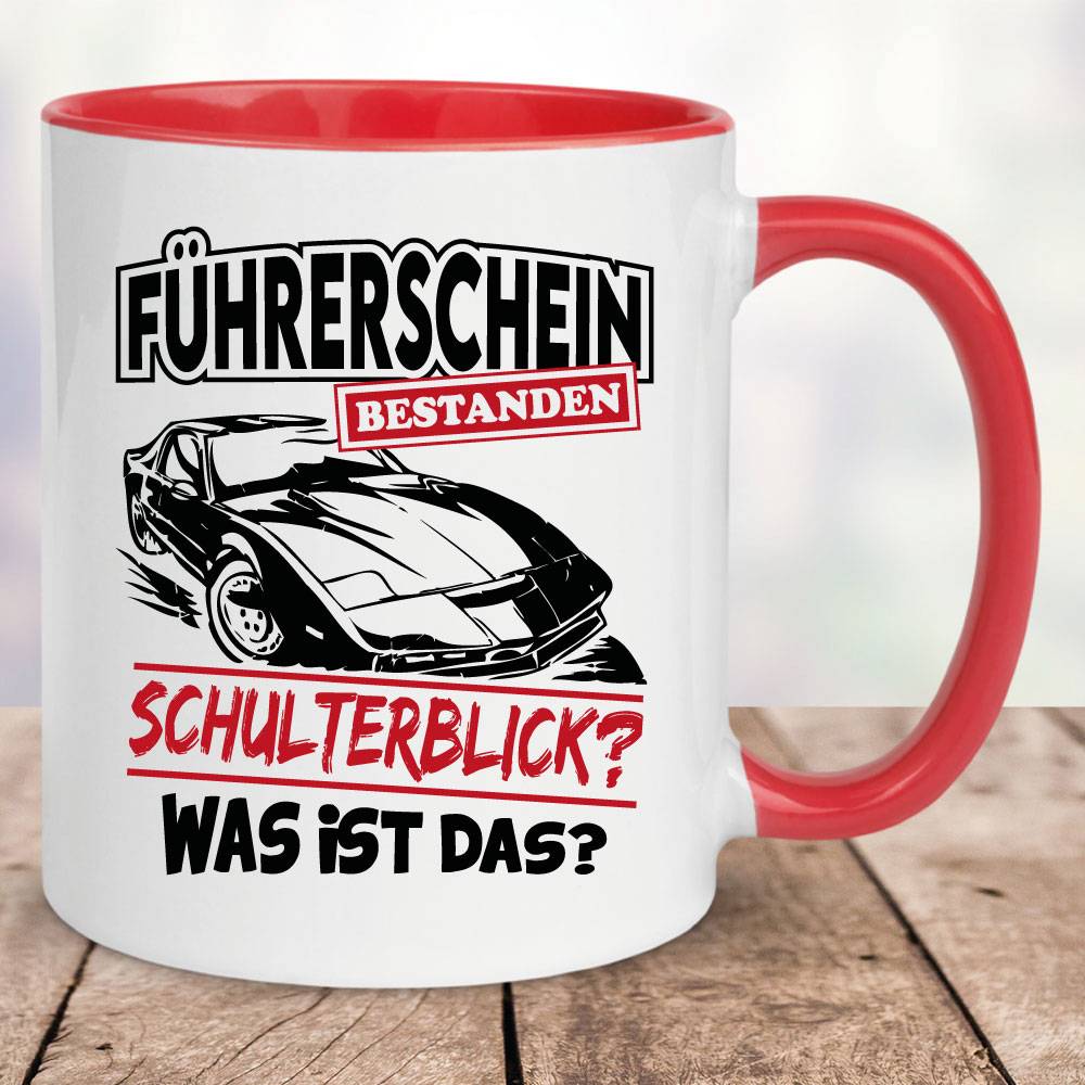 Mobile Preview: Tasse Fahrprüfung Führerschein Schulterblick