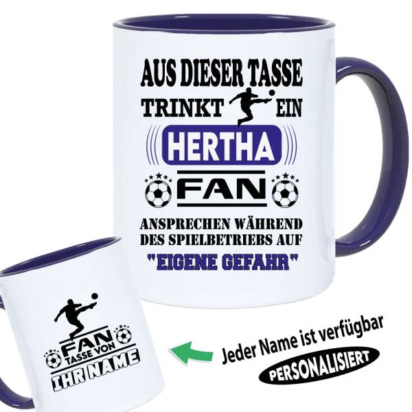 Personalisierte Fußballtasse für Hertha Fans Ein Fußballspiel ohne Spannung ist wie Kaffee ohne Tasse. Diese Tassen sind die perfekte Wahl für jeden Fan, der das Spiel liebt und den Moment genießen möchte. Tragen sie einfach in das Feld ihren Namen ein, und wählen sie ihre Tassenfarbe. Jeder Name ist verfügbar.