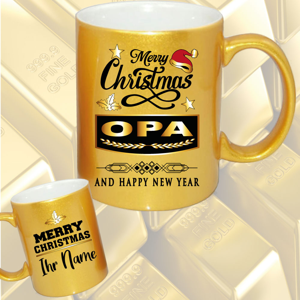 Die Kerzen brennen hell, doch diese Glitzertasse leuchtet heller. Schön, dass es dich gibt. Frohe Weihnachten Opa!