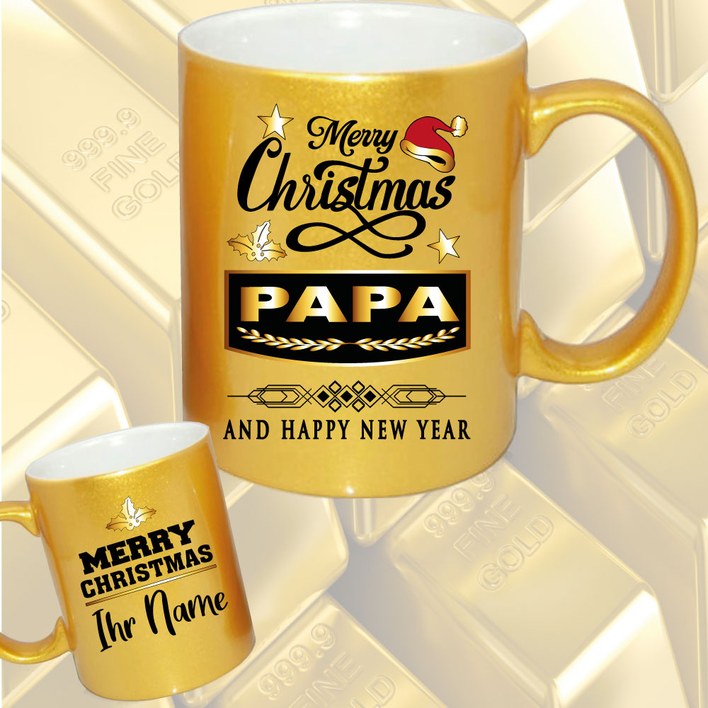 Die Kerzen brennen hell, doch diese Glitzertasse leuchtet heller. Schön, dass es dich gibt. Frohe Weihnachten Papa!