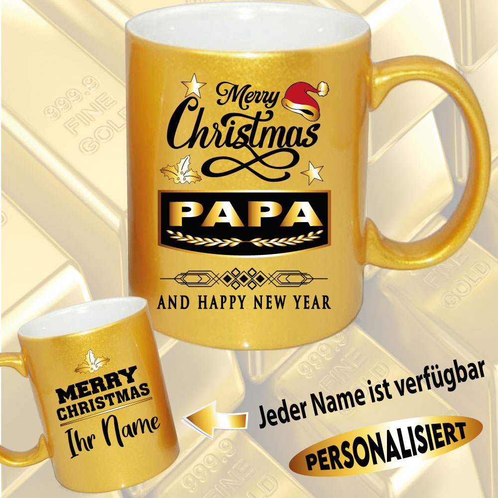 Geschenketasse zum Weihnachtsfest. Wählen sie ihre Farbe aus, und tragen sie ihren Namen ein. Auch für Mikrowelle und Spülmaschine geeignet. Hochglanzdruck.