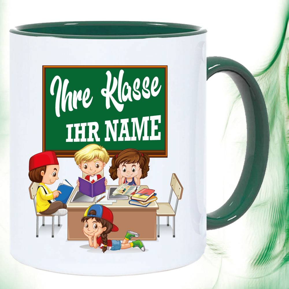 Tasse mit Schulklasse und Name bedruckt zur Einschulung