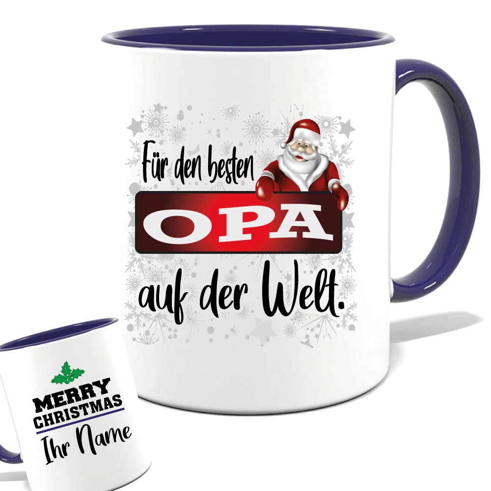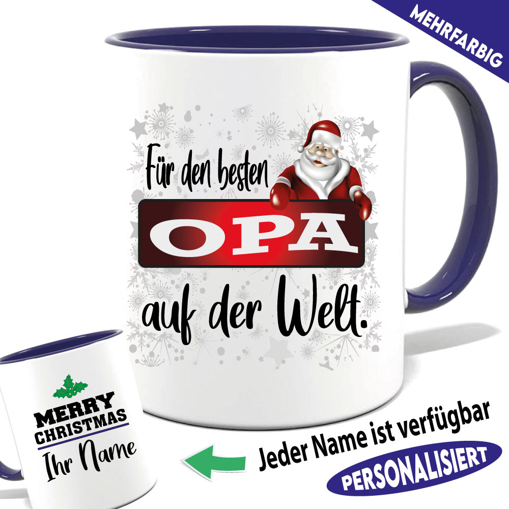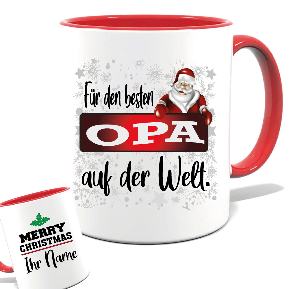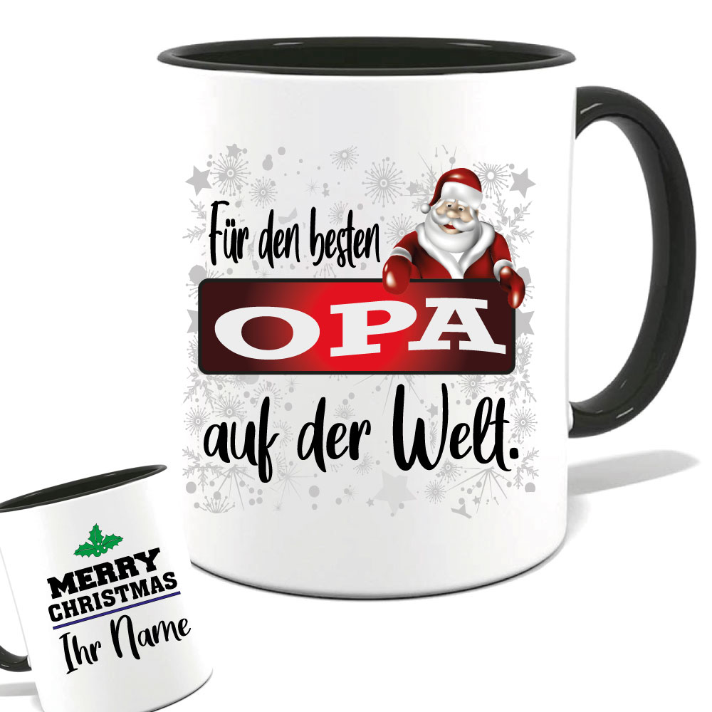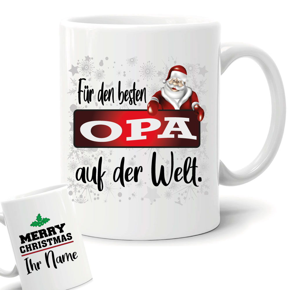 Geschenketasse zum Weihnachtsfest. Wählen sie ihre Farbe und Größe aus, und tragen sie ihren Namen ein. Auch für Mikrowelle und Spülmaschine geeignet. Hochglanzdruck.