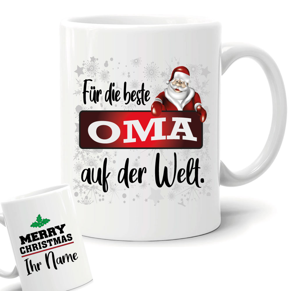 Geschenketasse zum Weihnachtsfest. Wählen sie ihre Farbe und Größe aus, und tragen sie ihren Namen ein. Auch für Mikrowelle und Spülmaschine geeignet. Hochglanzdruck.