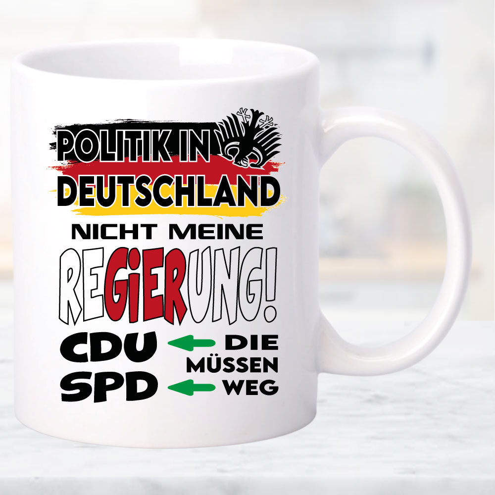 Die da oben labern, wir rackern. Und am Ende? Kein Geld, kein Vertrauen, kein Respekt. Wählen sie ihre Tassengröße und Farbe. Auch für Mikrowelle und Spülmaschine geeignet. Hochglanzdruck. Tassenfüllmenge 330 – 450ml.