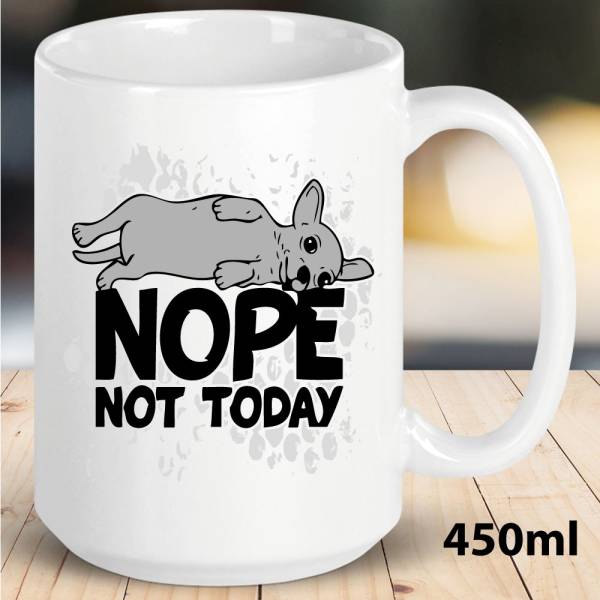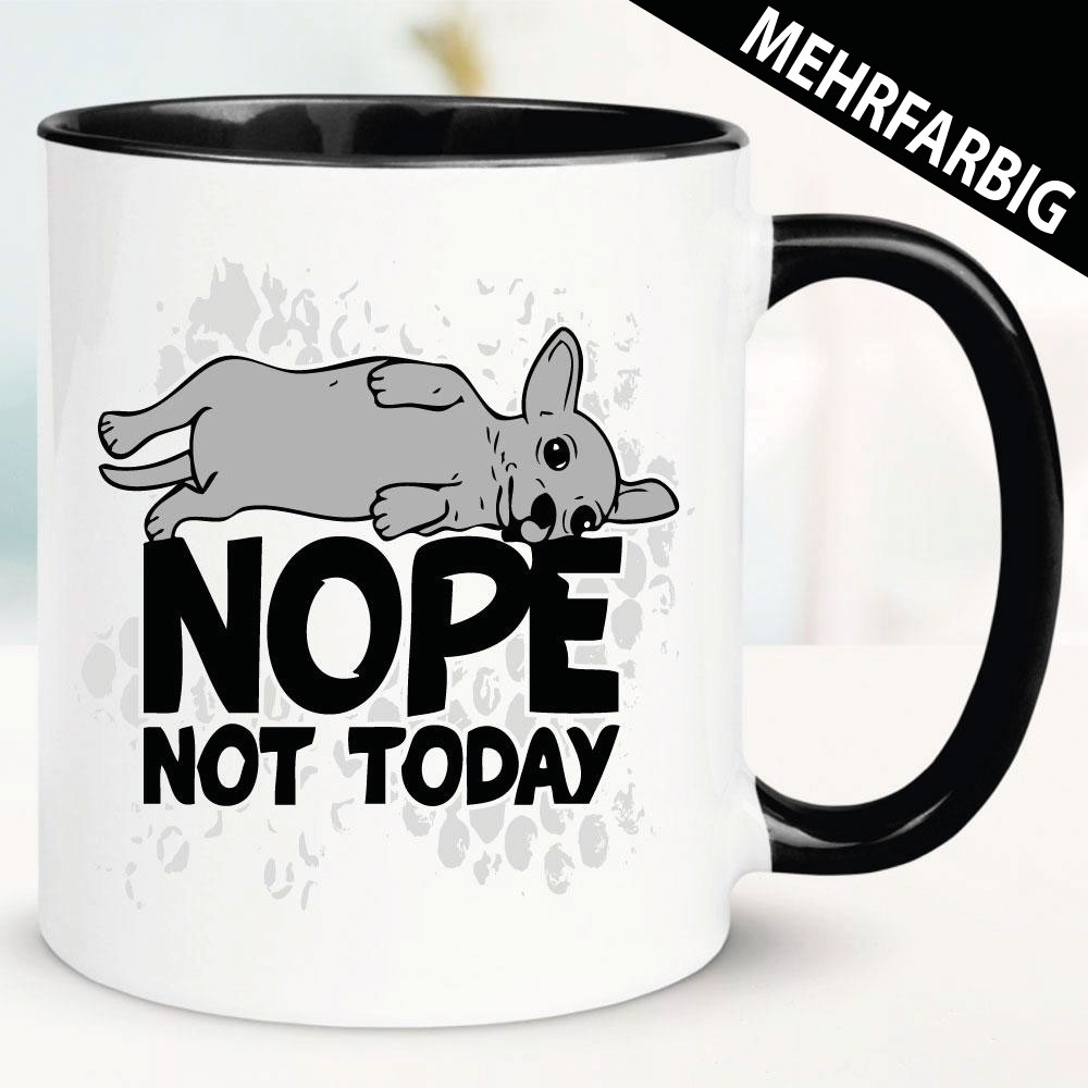 Tasse bedruckt mit Nope not today. Mit Hund in Seitenlage.