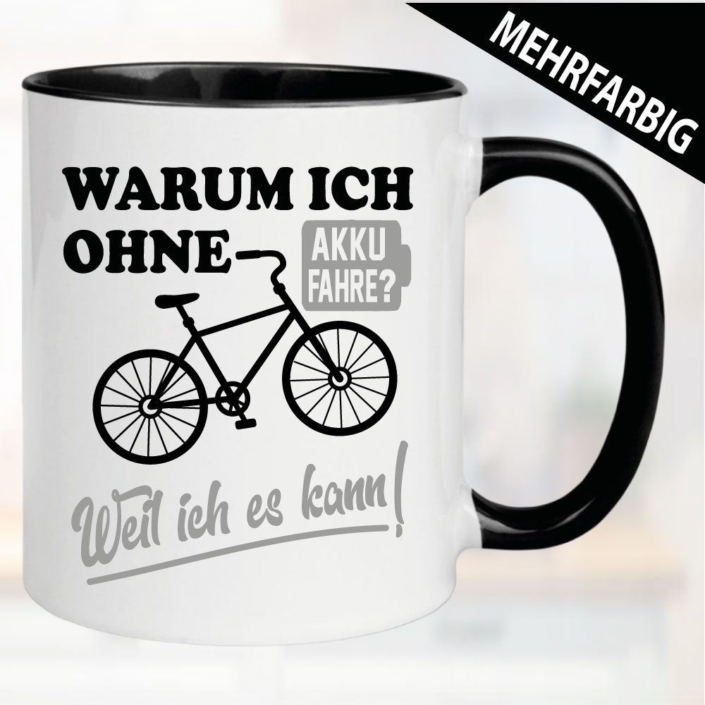 Sprüche Tasse für den Mann. Motiv Fahrrad Akku