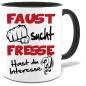 Sprüche Tasse für den Mann. Motiv Faust sucht Fresse