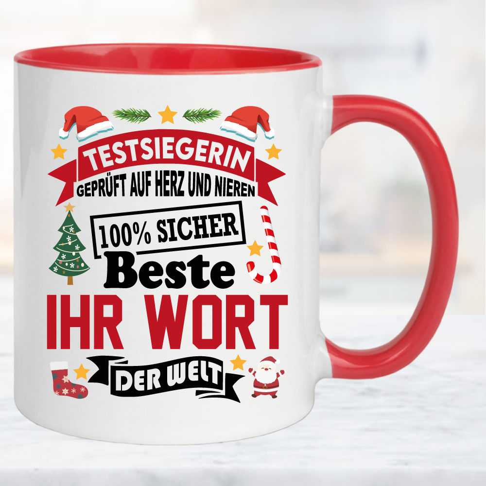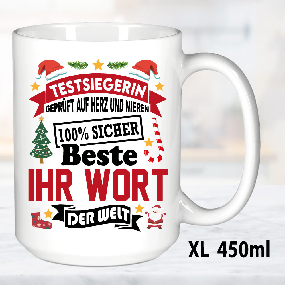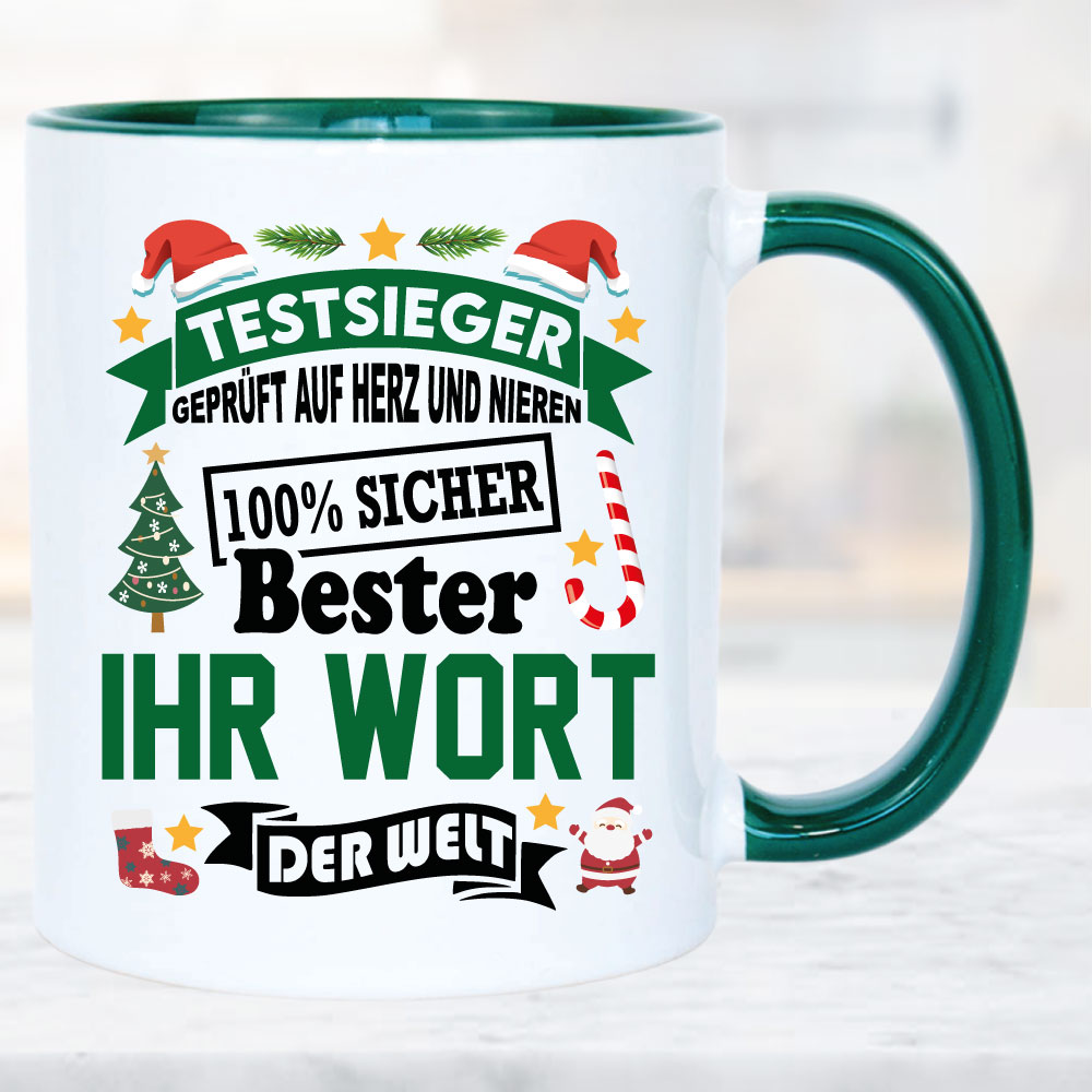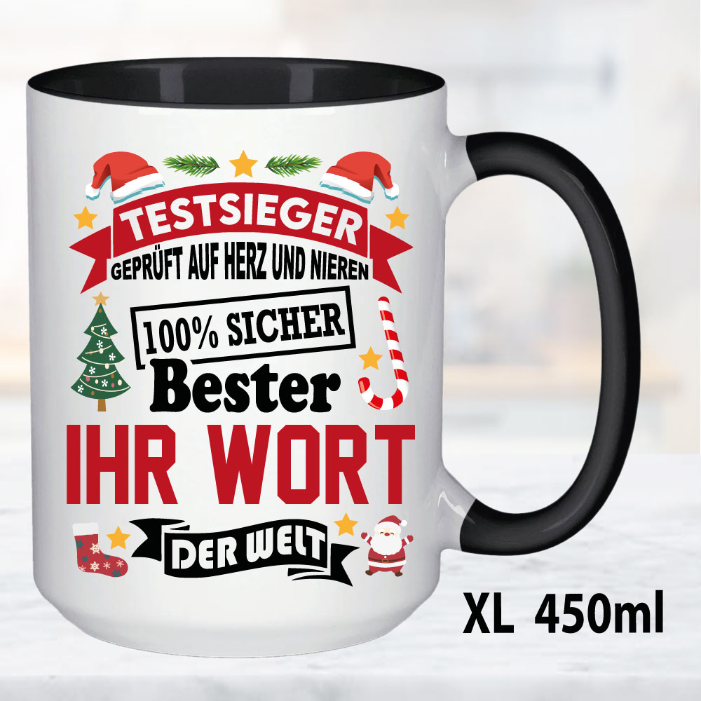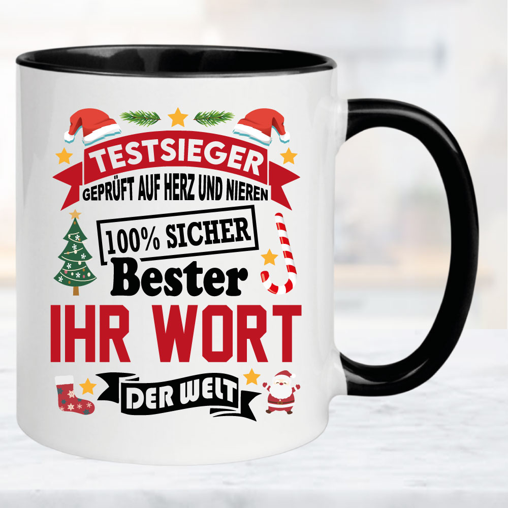 Geschenketasse zum Weihnachtsfest. Wählen sie ihre Farbe und Größe aus, und tragen sie ihre Druckdaten ein. Auch für Mikrowelle und Spülmaschine geeignet. Hochglanzdruck.