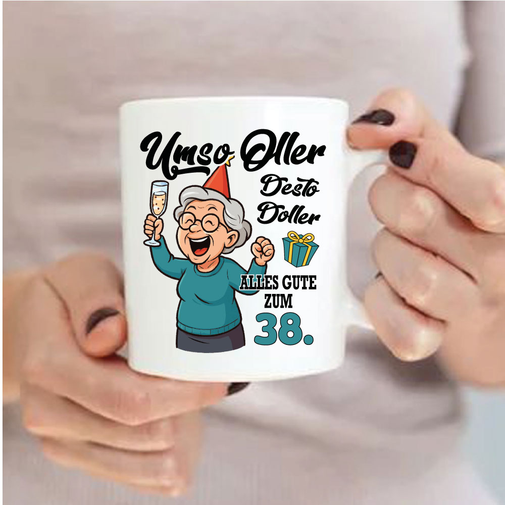 Geburtstagstasse Frau Umso Oller Desto Doller