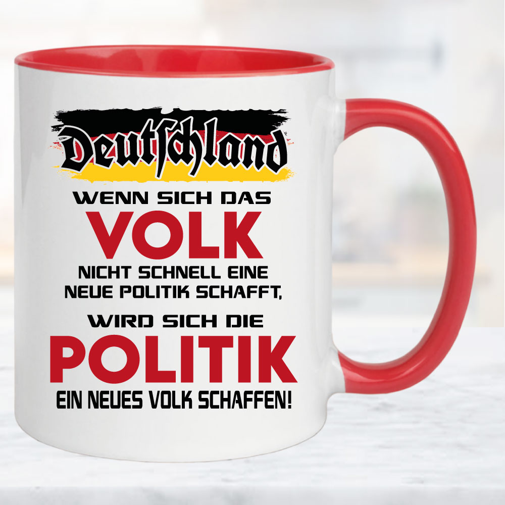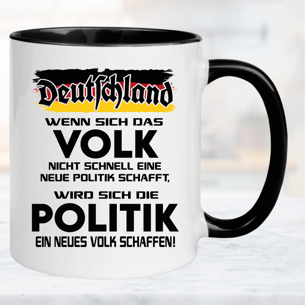 Politik redet über das Volk, aber nie mit dem Volk. Wählen sie ihre Tassengröße und Farbe. Auch für Mikrowelle und Spülmaschine geeignet. Hochglanzdruck. Tassenfüllmenge 330 – 450ml.