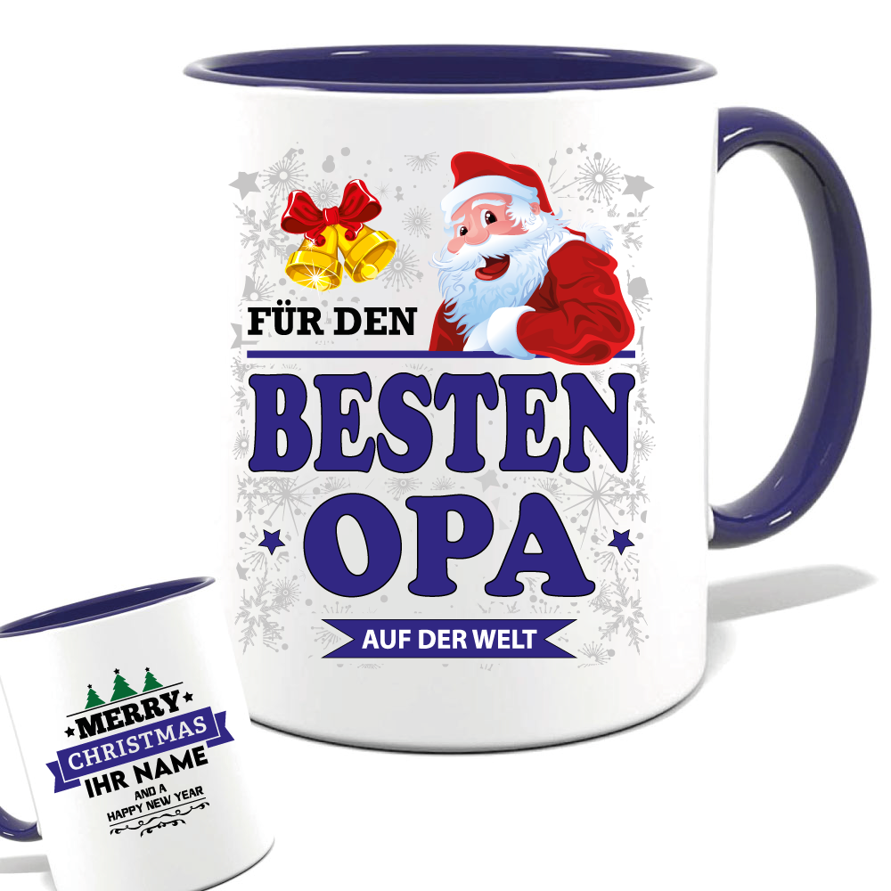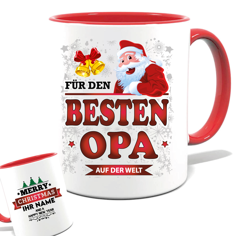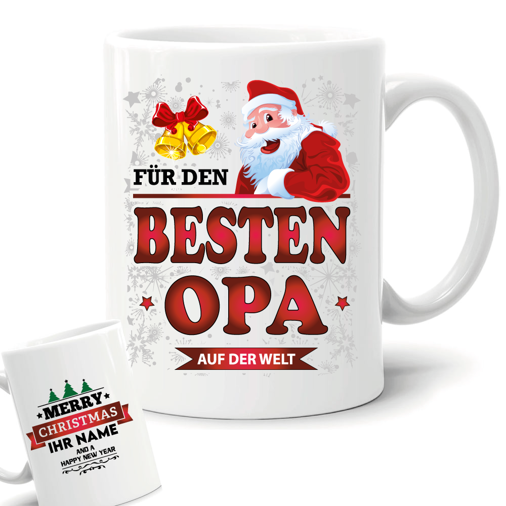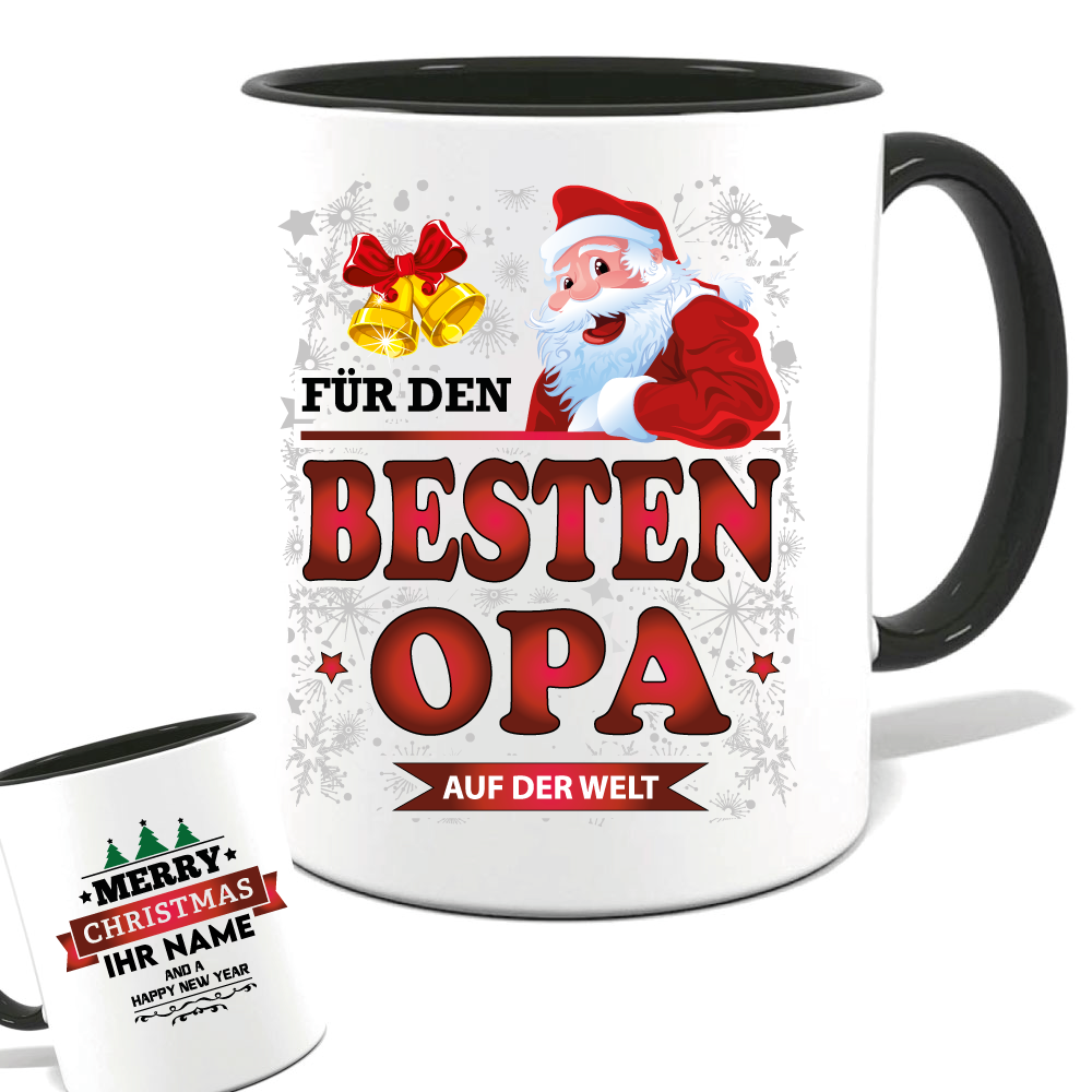 Geschenketasse zum Weihnachtsfest. Wählen sie ihre Farbe und Größe aus, und tragen sie ihren Namen ein. Auch für Mikrowelle und Spülmaschine geeignet. Hochglanzdruck.