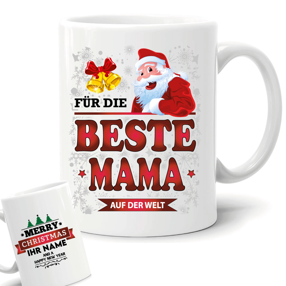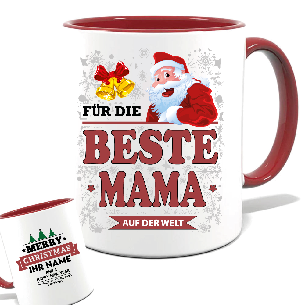 Geschenketasse zum Weihnachtsfest. Wählen sie ihre Farbe und Größe aus, und tragen sie ihren Namen ein. Auch für Mikrowelle und Spülmaschine geeignet. Hochglanzdruck.